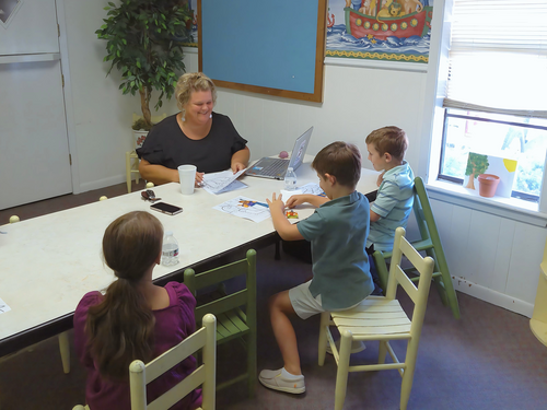 Ms.Betty's Sunday School class meets upstairs in the big classroom.